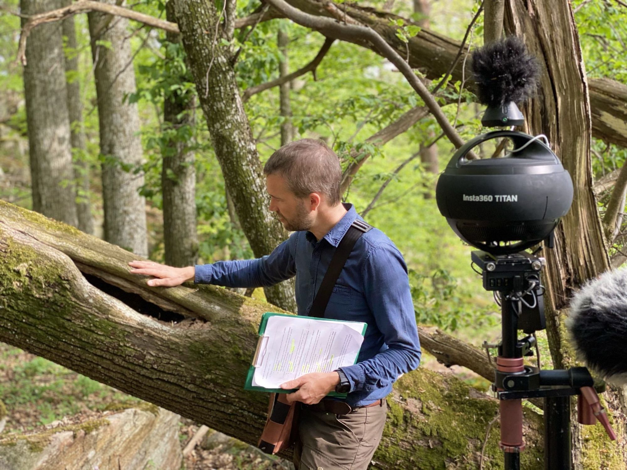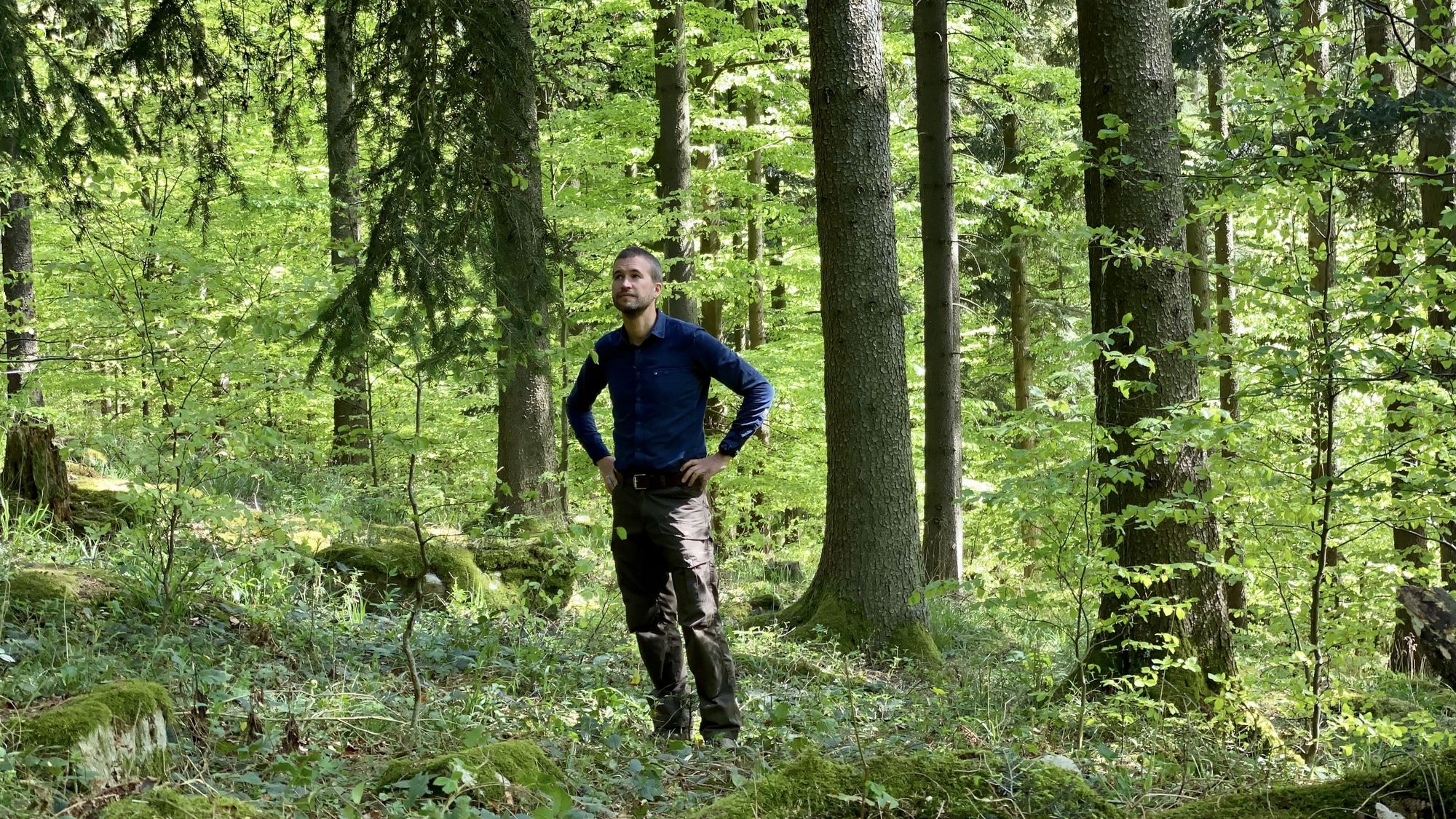 Hinter den Kulissen: Naturraummanager Stefan Schörghuber beim Dreh in einer Wald-Wildnis mitten im Wirtschaftswald